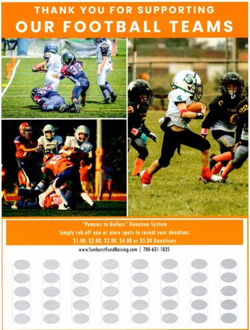 The donation spots range from $1.00 - $2 - $3 -$4- & $5.00, and you make $141.00 per card (when all spots are scratched off and money is collected)